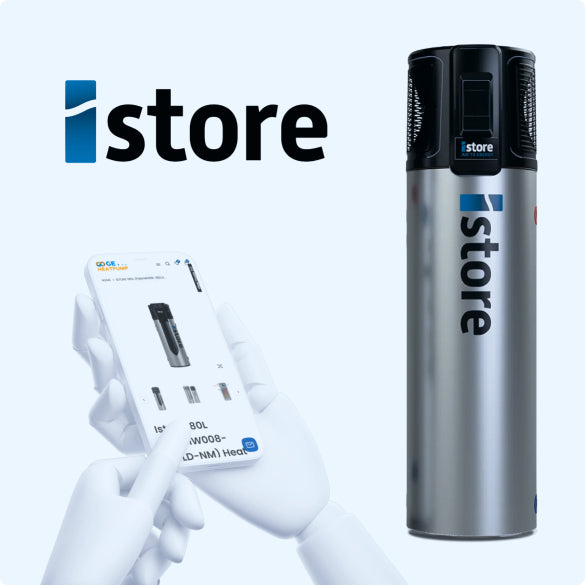Without the need for solar panels, the iStore's advanced technology can cut your hot water heating costs by up to 70%. It uses intelligent systems to convert air into hot water through the efficient transfer of thermal energy.